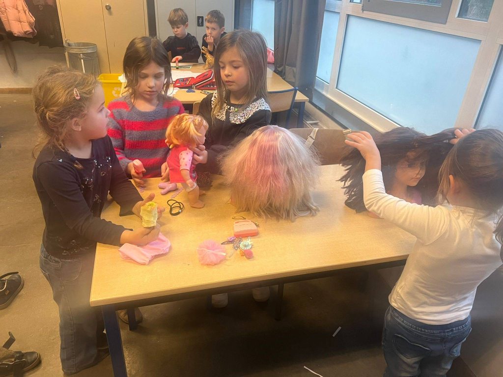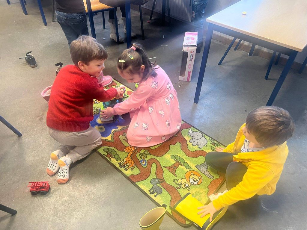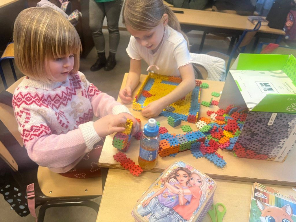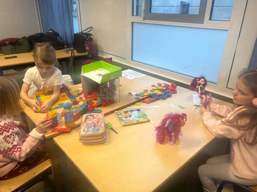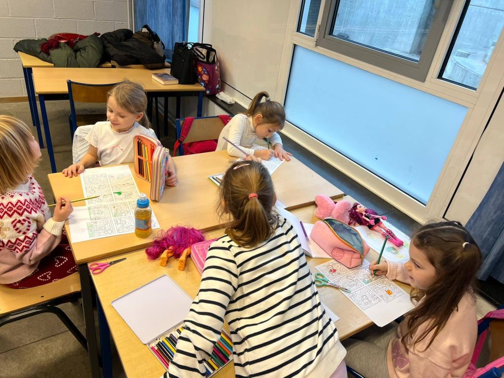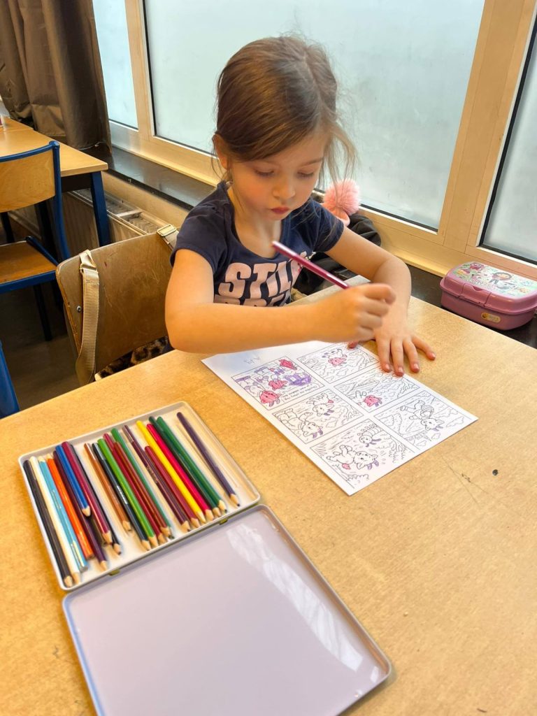 Najmłodsi uczniowie z zaciekawieniem i dużą uwagą słuchali wiersza, a następnie z entuzjazmem odtwarzali jego przebieg z obrazkowej rozsypanki.
