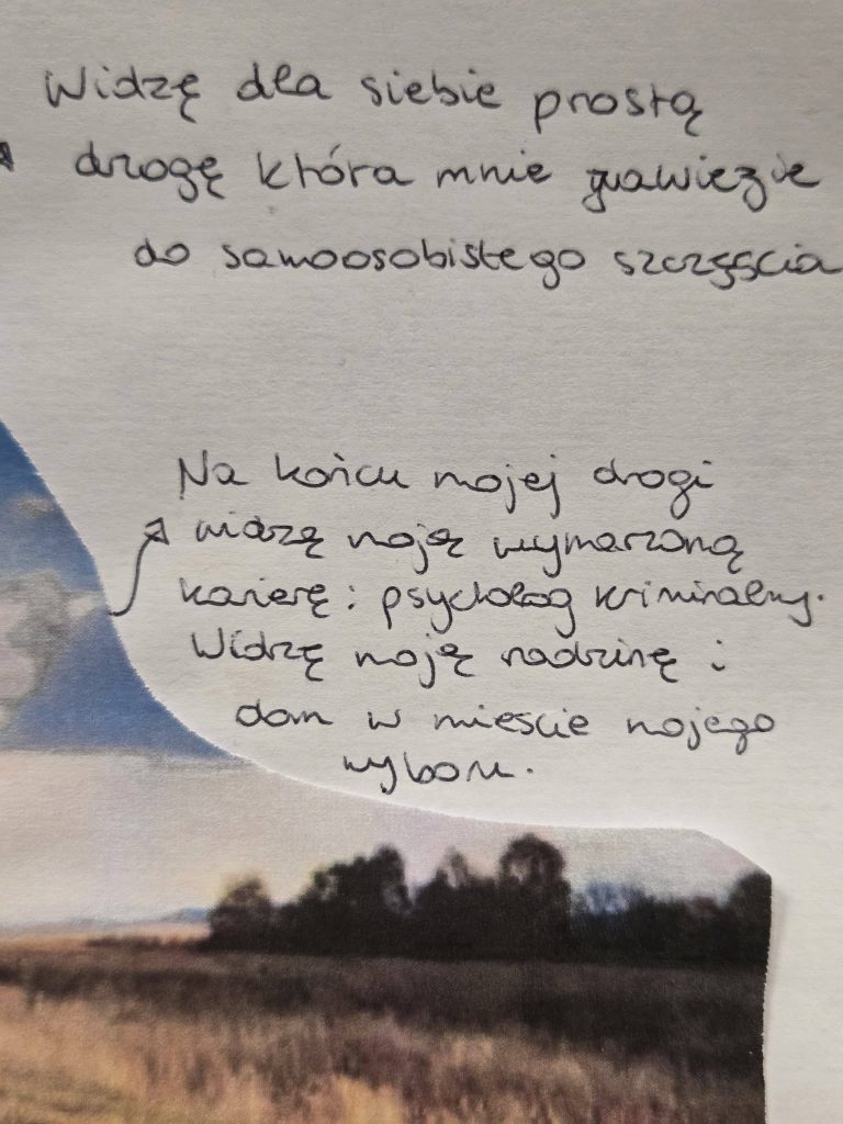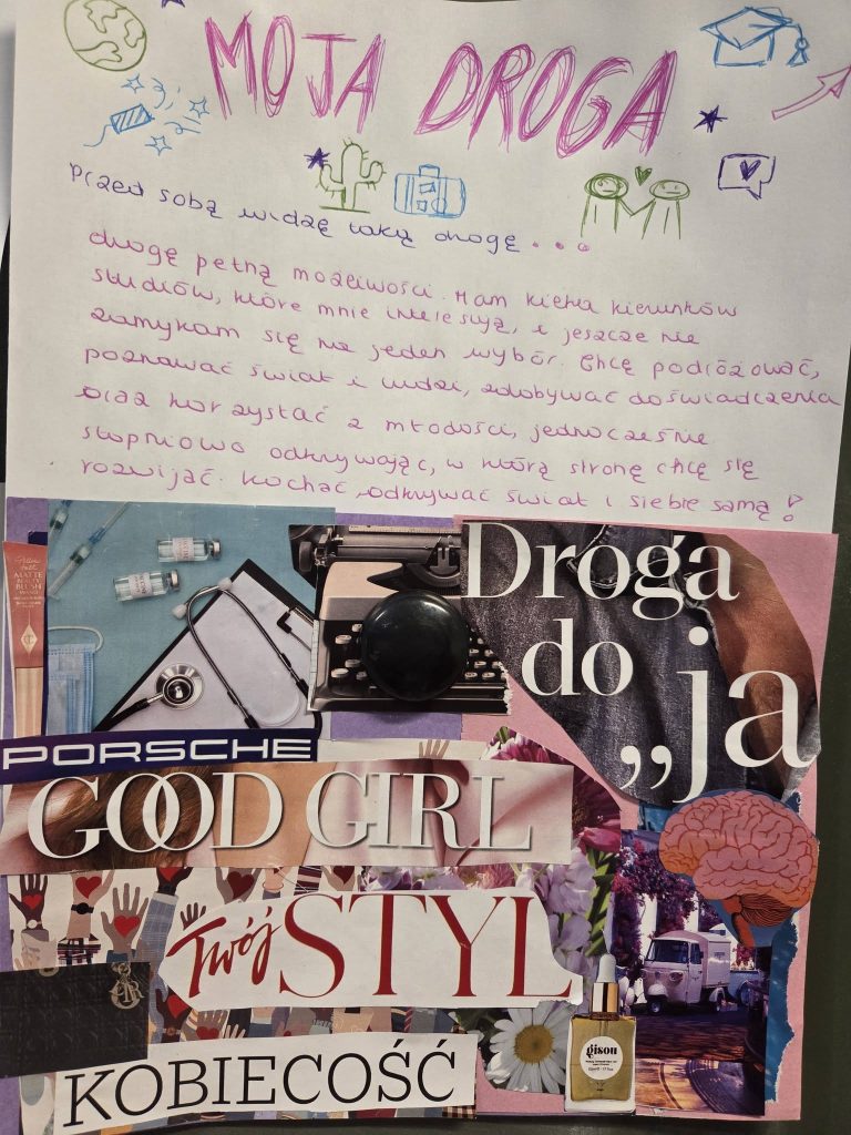 Od takiej właśnie wizji rozpoczęło się zadanie, którego podjęli się licealiści z klas 3a i 3b. Uczniowie, posługując się rysunkiem lub grafiką oraz krótkim komentarzem, próbowali pokazać, jak postrzegają swoją przyszłość – czy widzą ją jako spokojną czy pełną wyzwań, prowadzącą w znane czy jeszcze nieznane miejsce