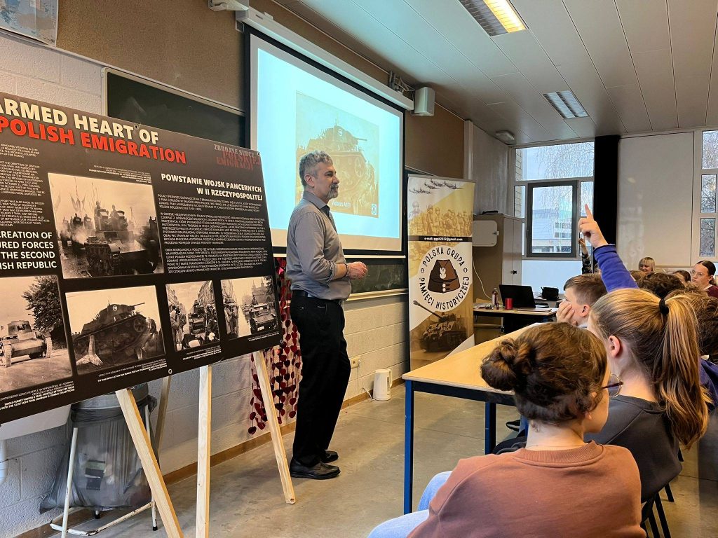 Podczas zajęć młodzież prześledziła początki tej historii – moment, gdy gen. Józef Haller sprowadził do odradzającej się Polski pierwsze czołgi Renault FT-17. Następnie wspólnie przyjrzeliśmy się wysiłkowi modernizacyjnemu II Rzeczypospolitej, formowaniu jednostek motorowych oraz losom 10. Brygady Kawalerii w kampanii 1939 roku i podczas walk we Francji.