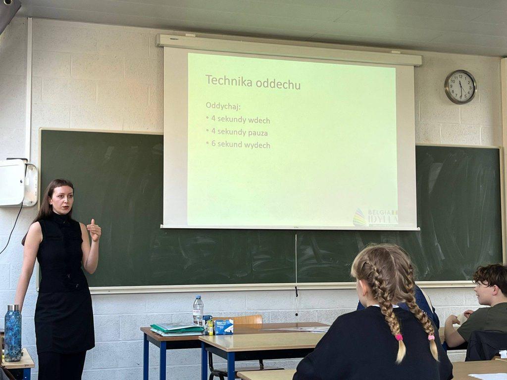 Uczniowie klasy 5c i 1b liceum uczestniczyli w warsztatach „Jak radzić sobie z sytuacjami stresowymi”. Podczas zajęć rozmawiali o tym, jak rozładować napięcie towarzyszące m.in. sprawdzianom, a także poznali praktyczne techniki oddechowe